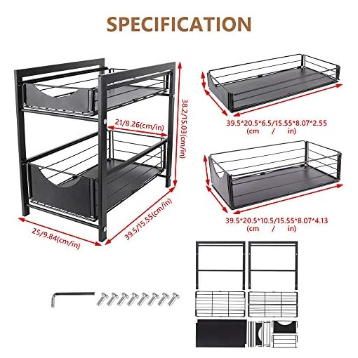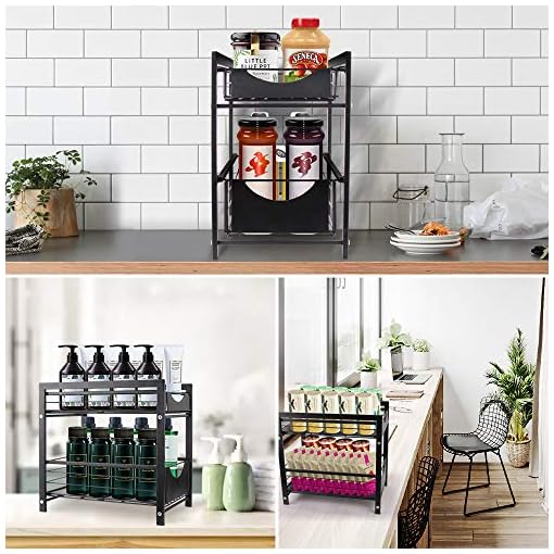Often the biggest problem with kitchen cabinets is the ineffective use of space. At its maximum, this under sink organizer measures 15.5 inches wide and 10 inches tall, but the shelf and each of its extending arms can be adjusted independently to find the configuration that is just right for your. Kitchen storage & organization is easy with spice racks, undershelf baskets, stacking canisters and stemware holders that utilize every inch of your pantry. Create efficient kitchen storage with drawer organizers, pot racks, cabinet organizers, rolling carts and refrigerator bins. 😉 easy and simple way to keep spices and other items within reach. Shelf organizers, risers and cabinet drawers make your spices, kitchen tools and dinnerware easily visible and accessible. This bathroom organizer under sink storage shelf is tested to hold up to 40 pounds to accomodate all your cleaning supplies. The mainstays folding stacking shelf helps keep your kitchen organized and provides more space wherever it is used. Shelves are often spaced too far apart, leaving wasted space. Our under the sink organizer kitchen shelf is a breeze to relocate when needed as it works great for any room. These products help tackle this wasted space and make cabinets 100% more efficient. 😏 this kitchen organization and storage is very easy to install and so helpful in the pantry organizer. 26" wide x 22" deep x 4" high, requires at least 26'' cabinet opening, mounting hardware included.