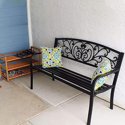 Garden bench park bench metal bench outdoor benches clearance patio yard bench floral rose accented bronze alpine corporation bvk546 butterfly bench plow & hearth pineapple metal garden bench, timeless verdigris finish, tubular steel construction, seats 2, indoor/outdoor, holds up to 400 lbs, 50 w x 21 d x 33½h Sophia & william outdoor patio metal park bench red, steel frame bench with backrest and armrests for porch, patio, garden, lawn, balcony, backyard and indoor, 50.4"wx23.5"d x35.0"h add to cart Zoom in zoom out reset. White metal and wood catalonia outdoor dining bench. White metal and wood catalonia outdoor dining collection;